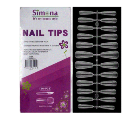 Uñas postizas transparente press on simona set x 240 uds coffin ref 4101